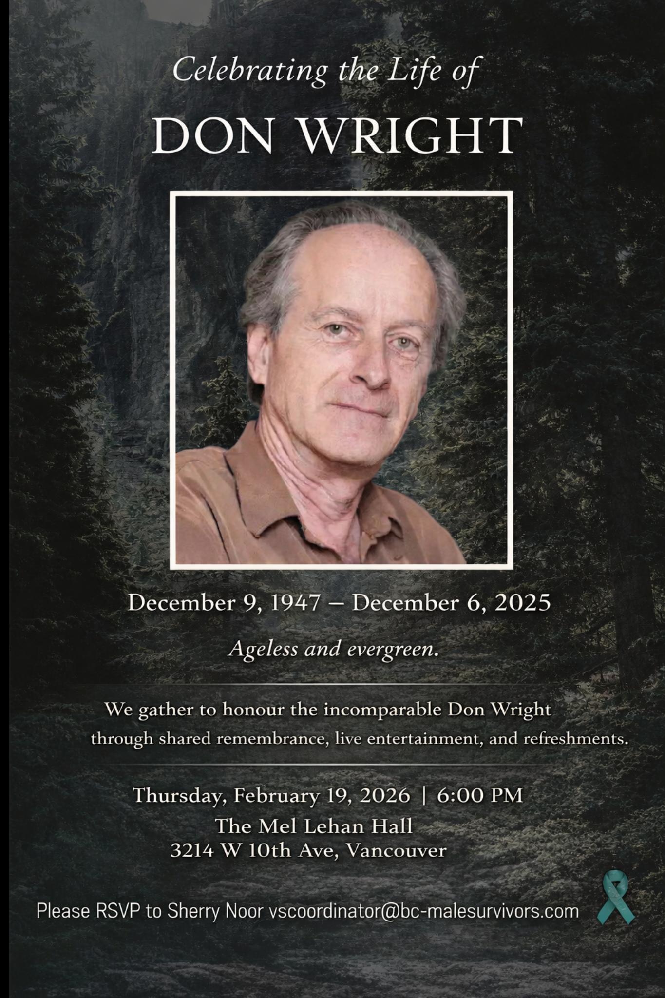 This gathering is a chance for us to come together, share memories, and honour the incredible impact Don had on so many lives. It would mean a lot to have those who knew and cared about him present as we remember him together.